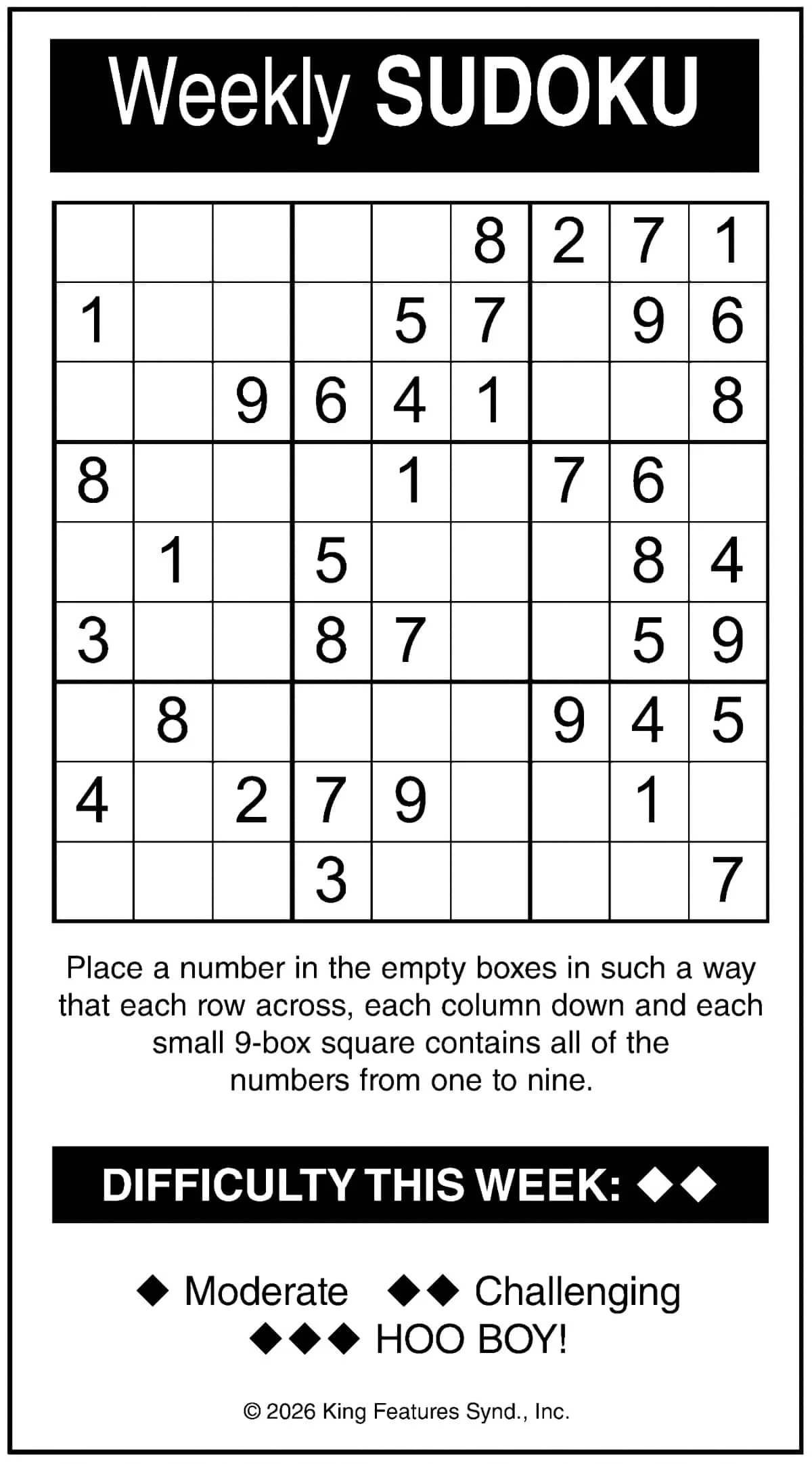 Weekly Sudoku: April 23 Fun & Games Apr 23 Written By Your West Central Voice Flex your math brain muscles with our weekly Sudoku puzzle! Answers below! Your West Central Voice