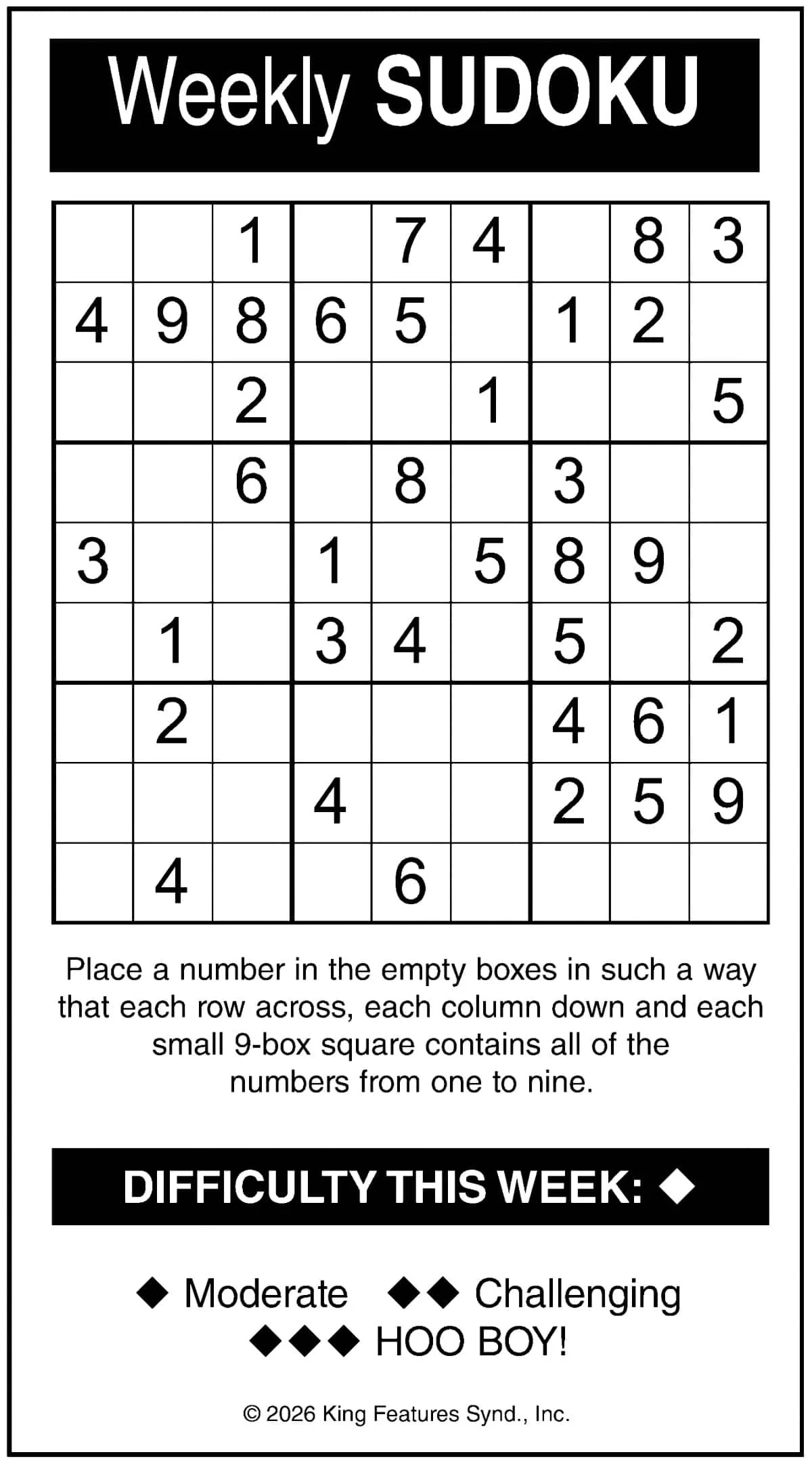 Weekly Sudoku: February 12 Fun & Games Feb 12 Written By Your West Central Voice Flex your math brain muscles with our weekly Sudoku puzzle! Answers below! Your West Central Voice