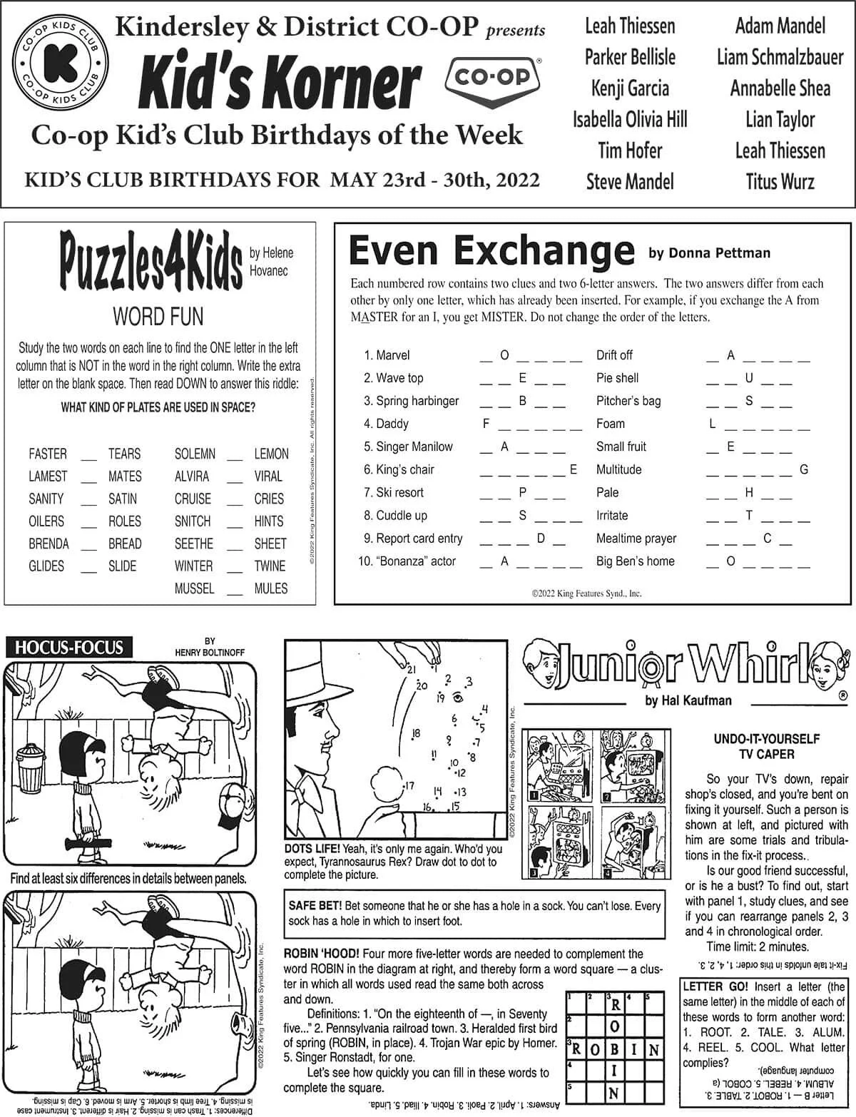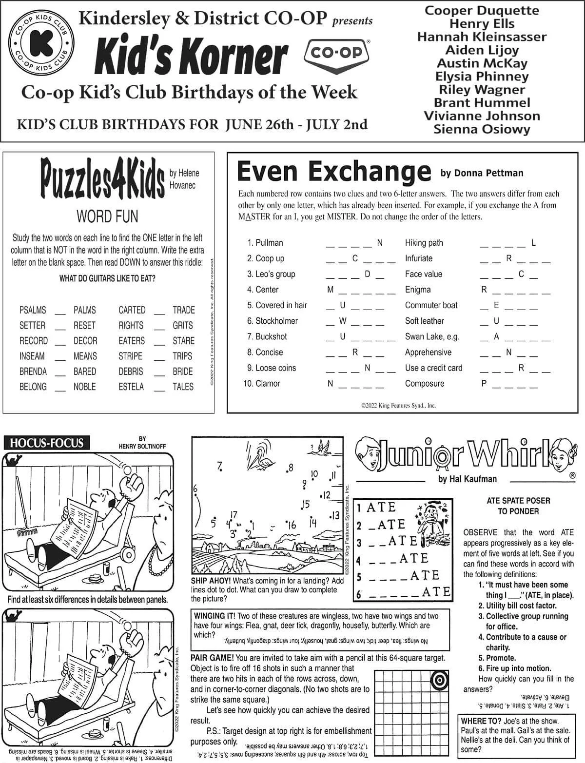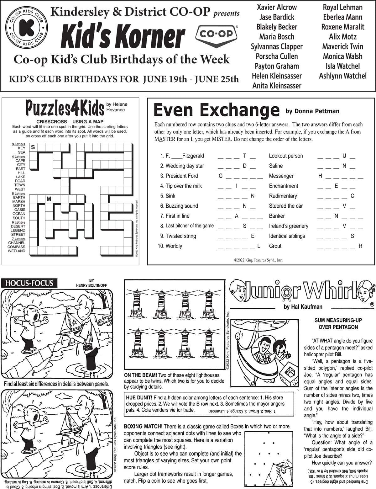 Hey kids, enjoy some puzzles and our junior whirl! The young at heart can enjoy these too!