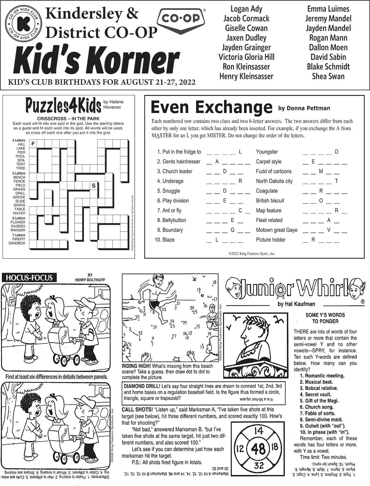 Hey kids, enjoy some puzzles and our junior whirl! The young at heart can enjoy these too!