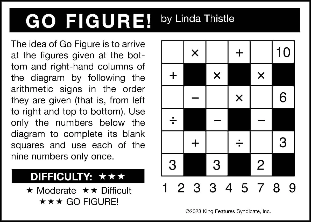 The idea of Go Figure is to arrive at the figures given at the bottom and right-hand columns of the diagram.