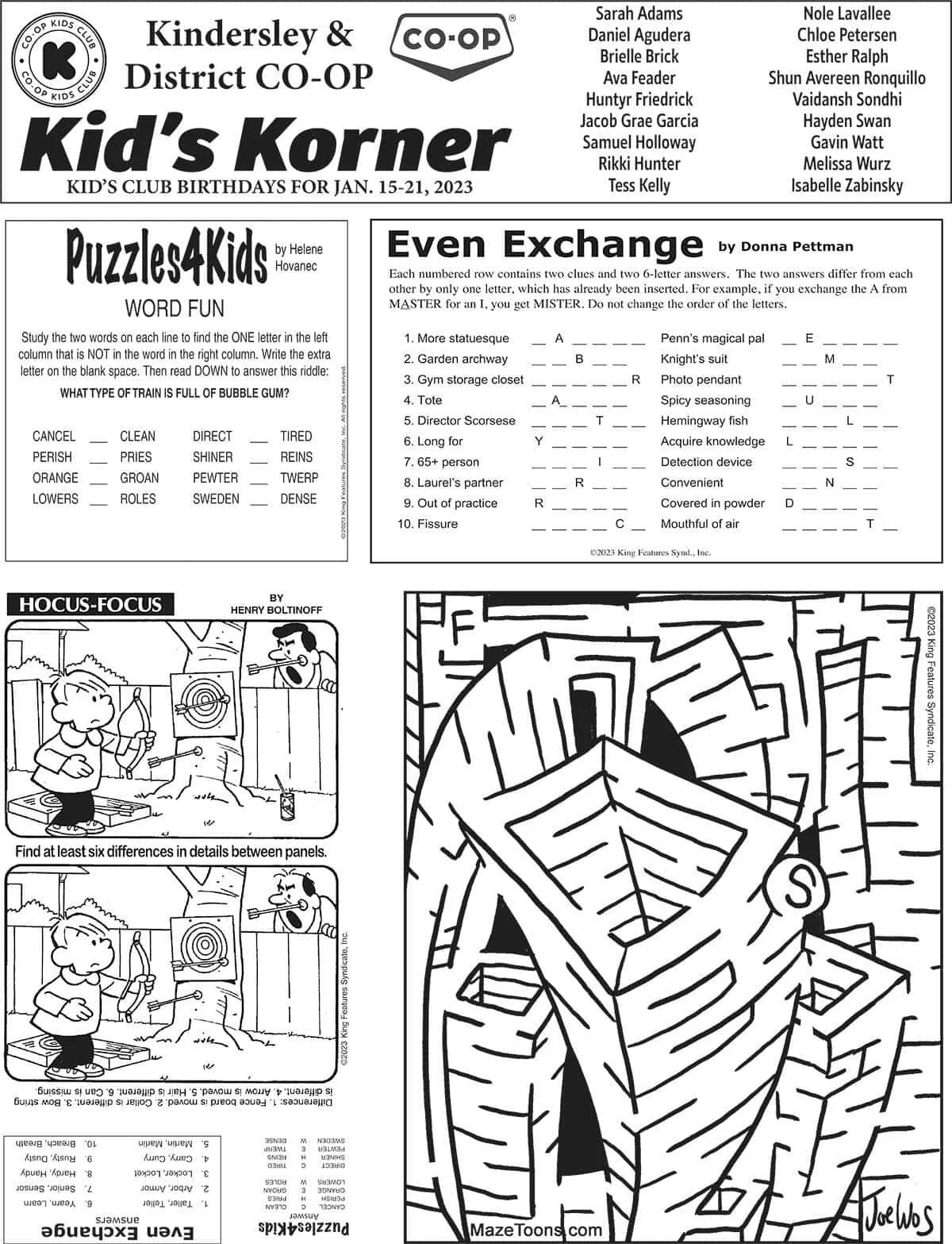 Hey kids, enjoy some puzzles and our junior whirl! The young at heart can enjoy these too!