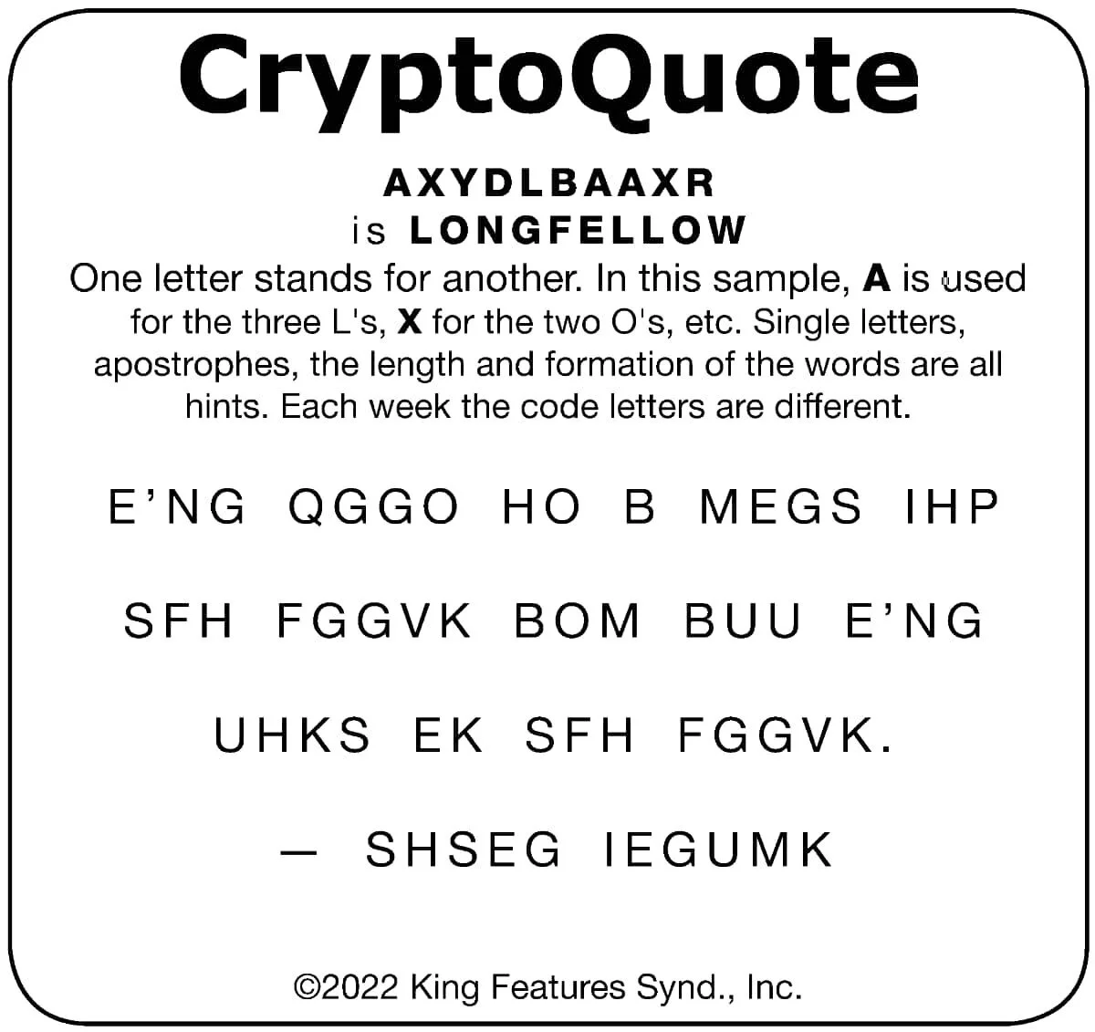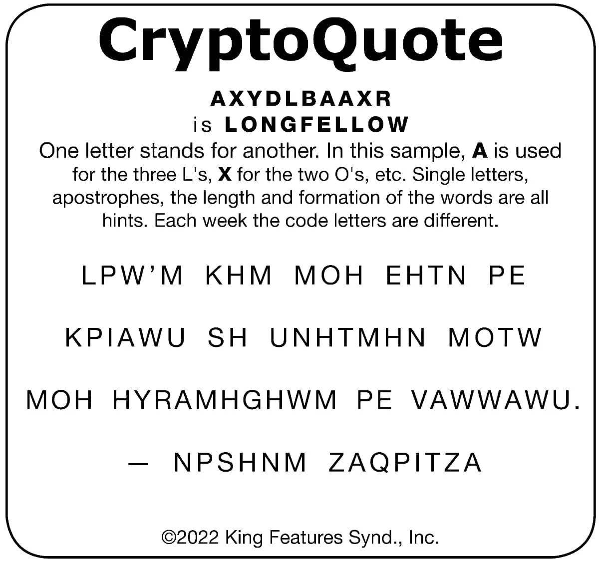Have fun breaking the CryptoQuote! Each week the code letters are different.