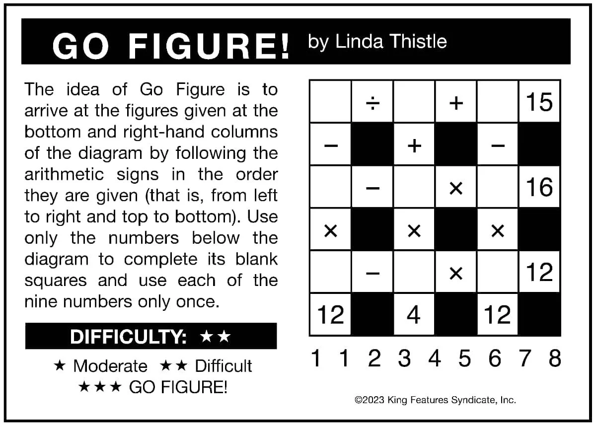 The idea of Go Figure is to arrive at the figures given at the bottom and right-hand columns of the diagram.