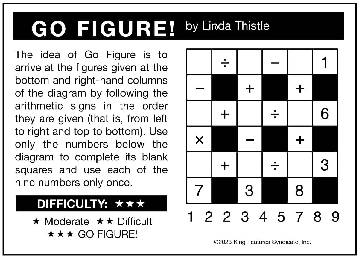 The idea of Go Figure is to arrive at the figures given at the bottom and right-hand columns of the diagram.
