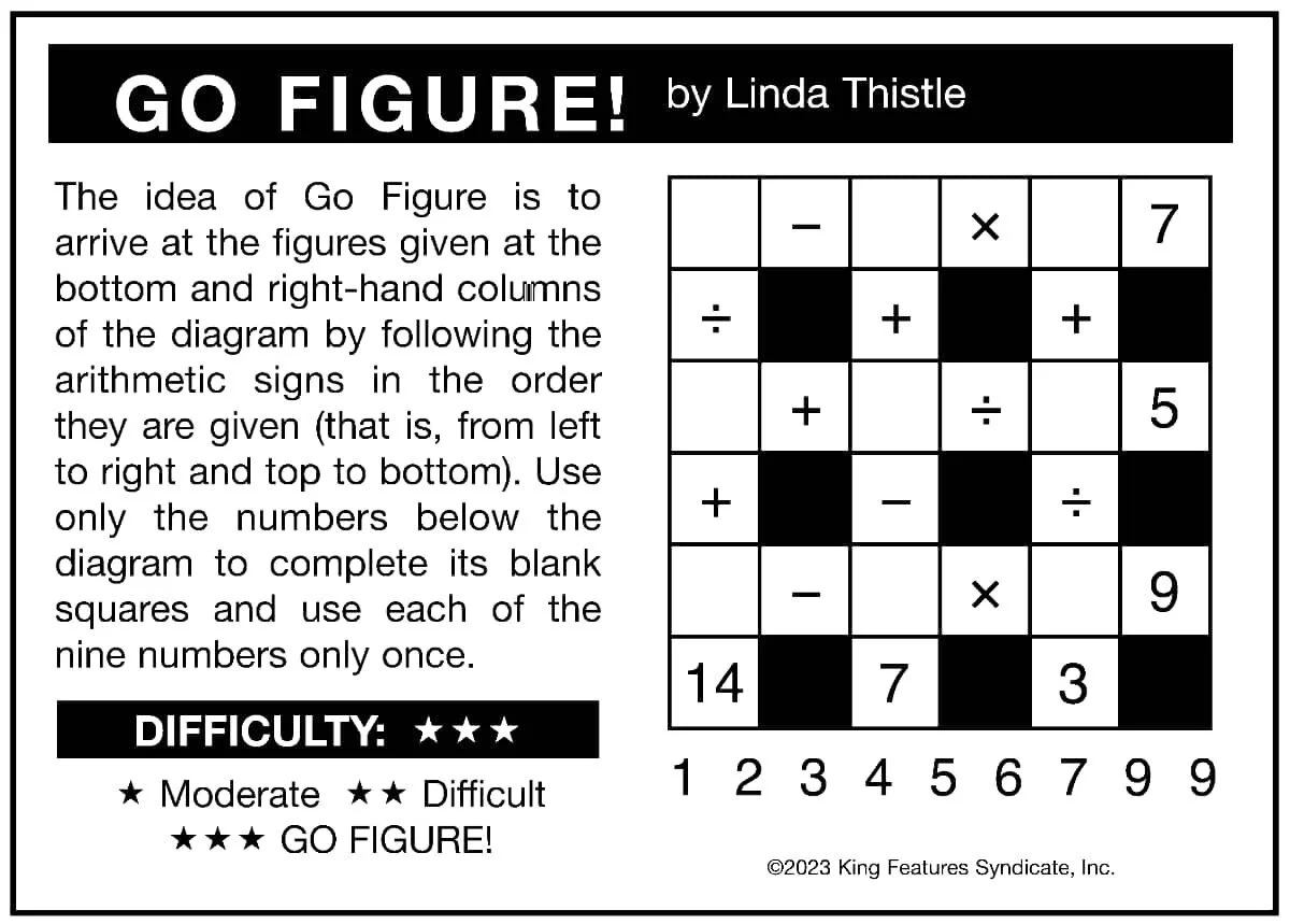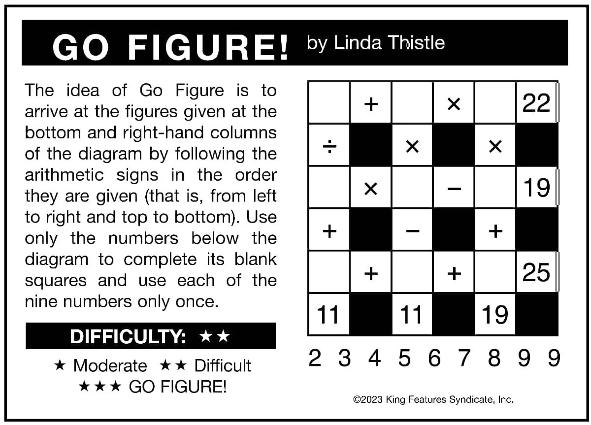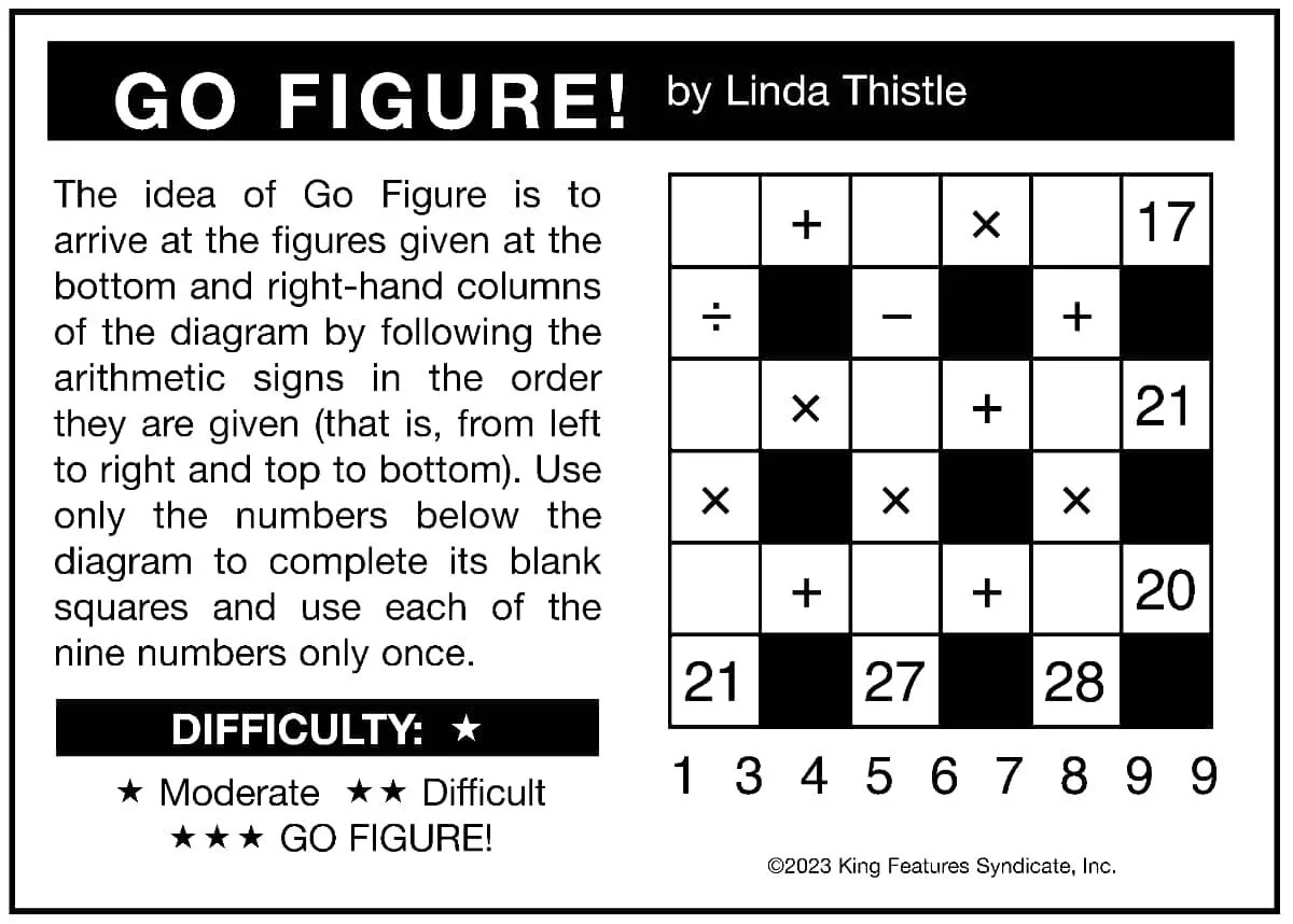 The idea of Go Figure is to arrive at the figures given at the bottom and right-hand columns of the diagram.