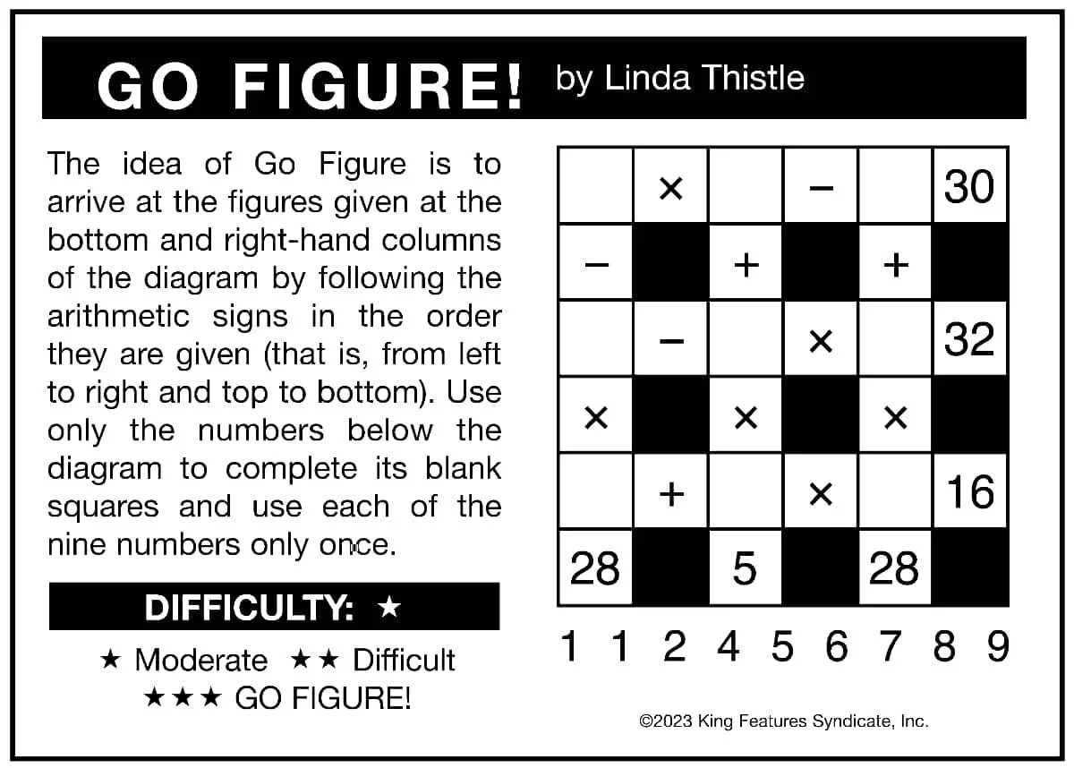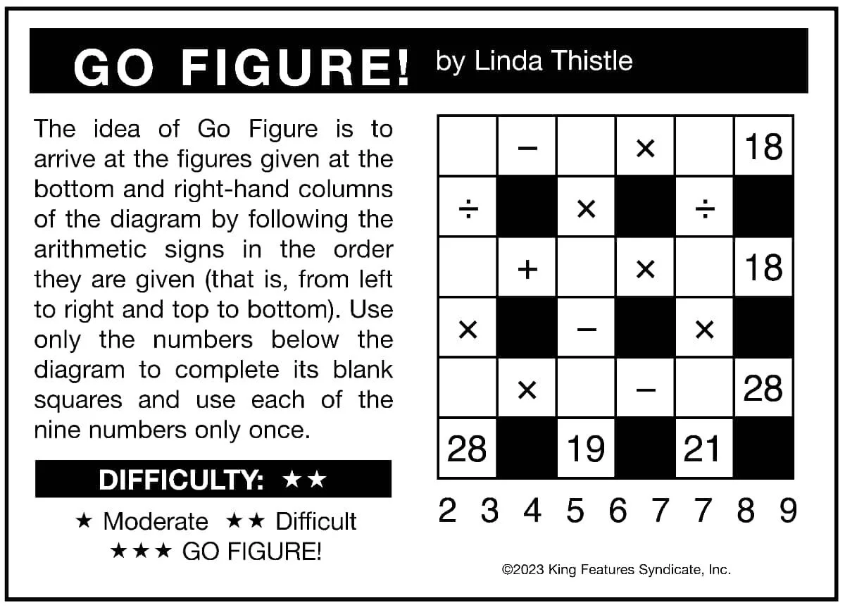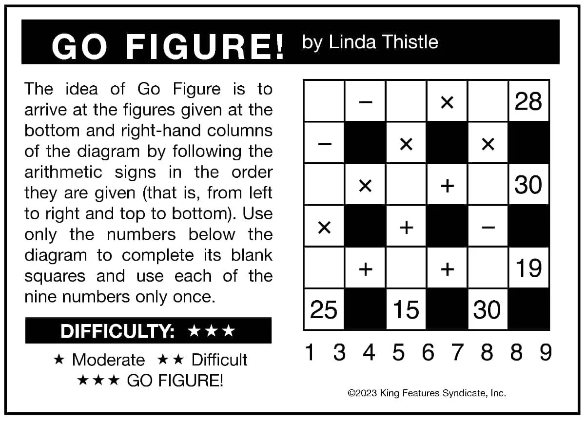 The idea of Go Figure is to arrive at the figures given at the bottom and right-hand columns of the diagram.