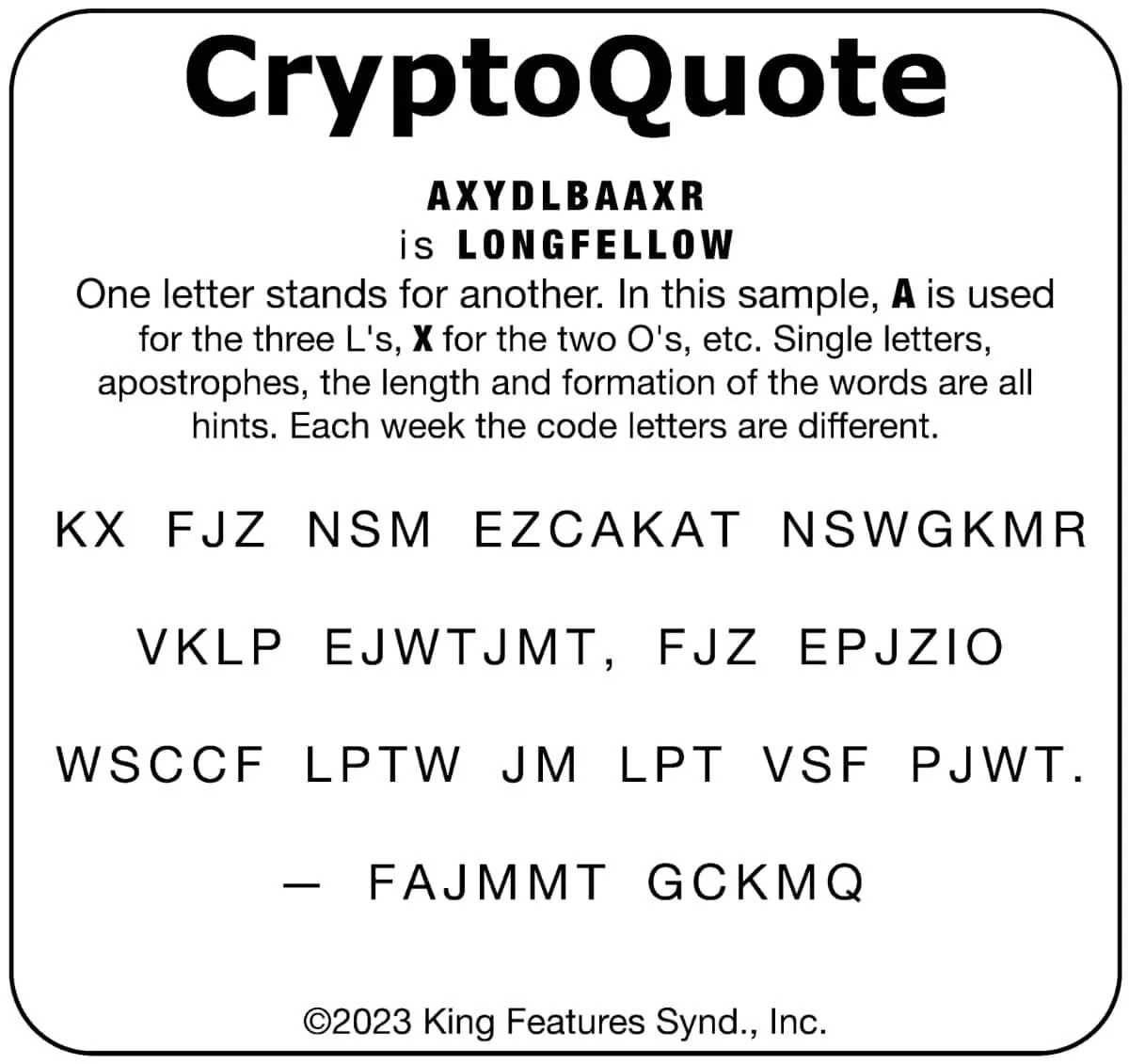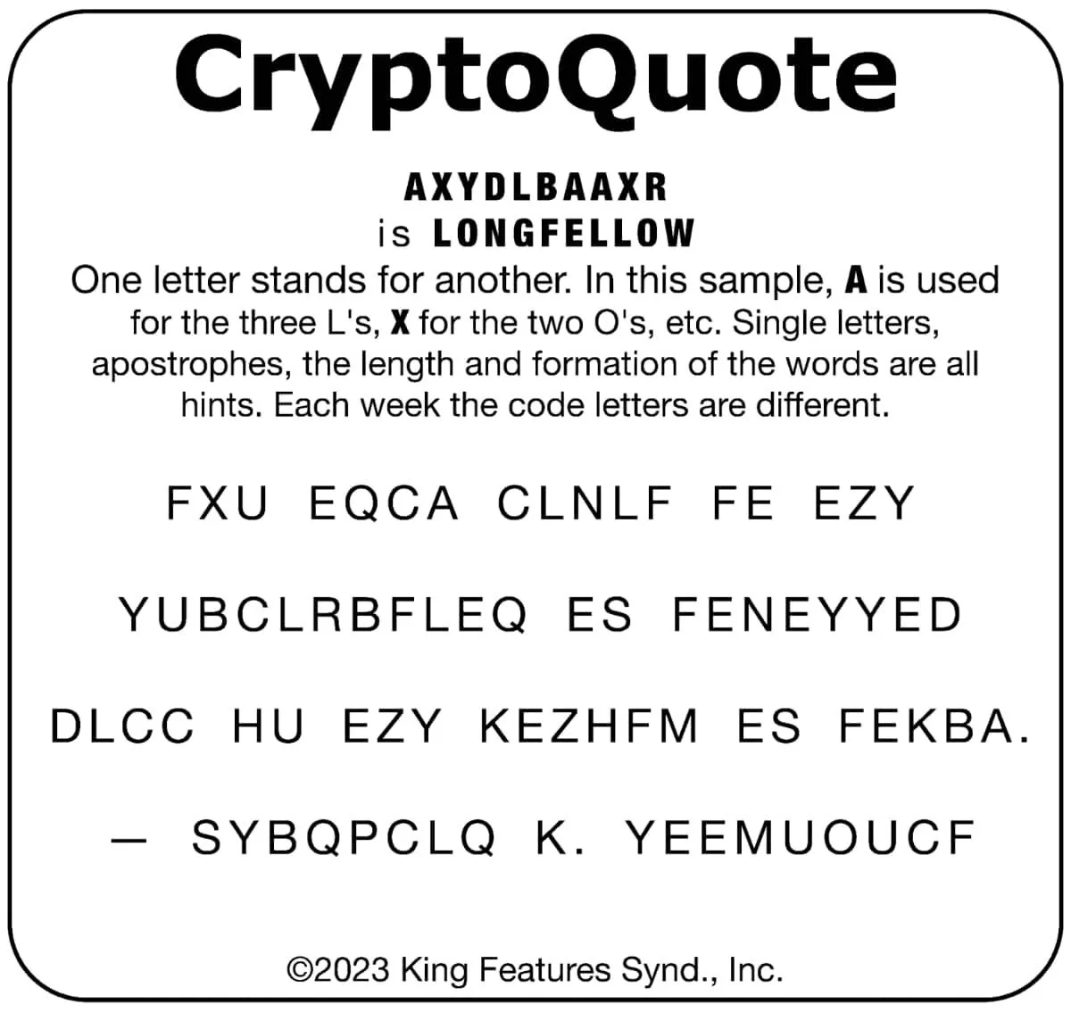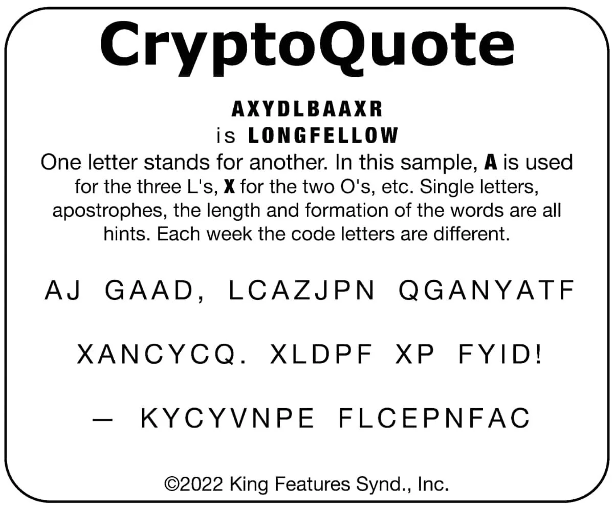 Have fun breaking the CryptoQuote! Each week the code letters are different.