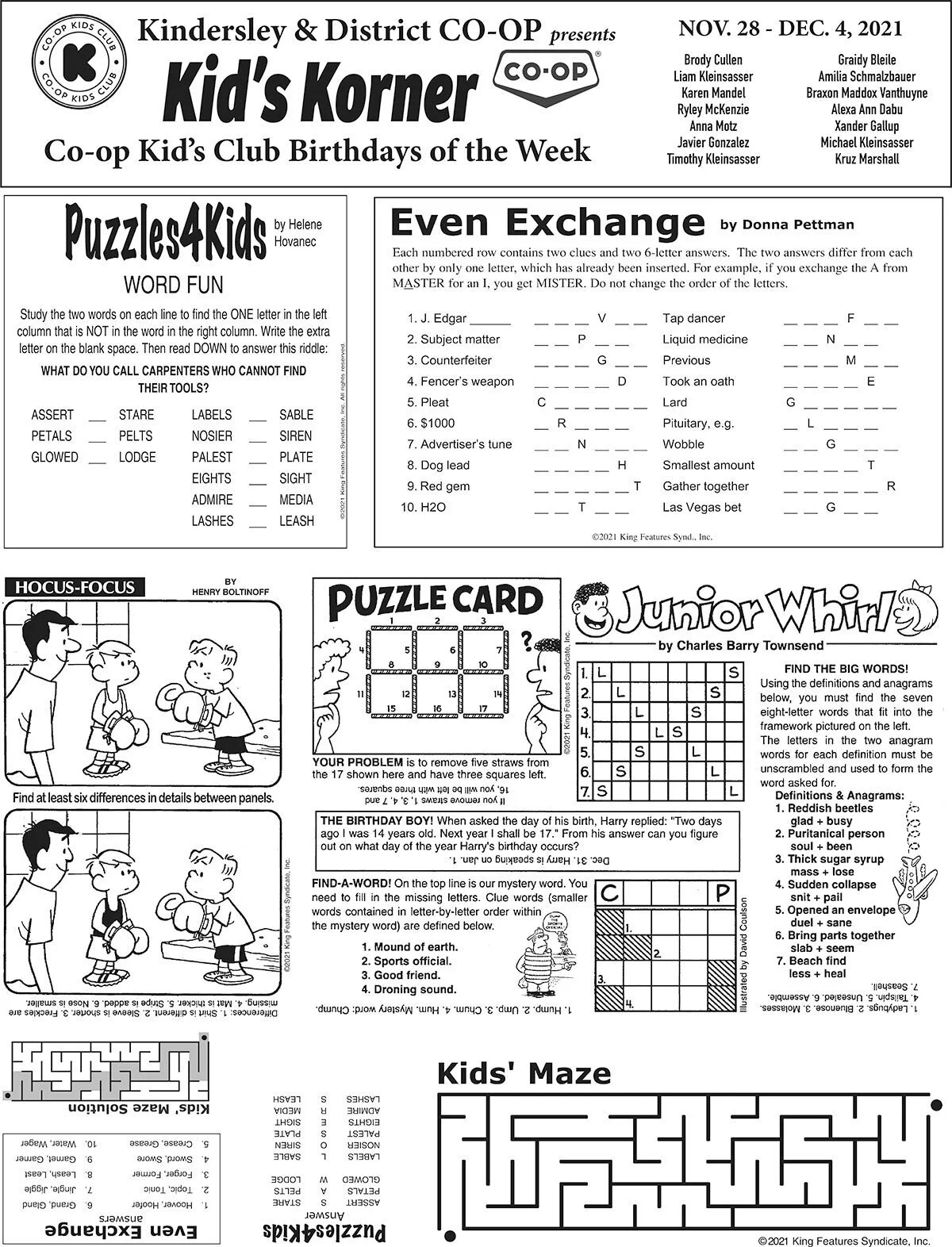 Hey kids, enjoy some puzzles and our junior whirl! The young at heart can enjoy these too!