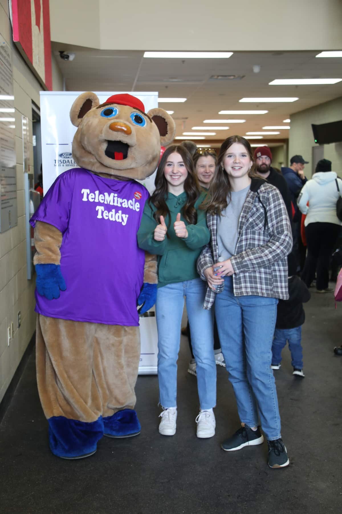 TELEMIRACLE TEDDY! The Kinsmen and Kinette Club of Kindersley brought in a special guest for their fundraiser at the Kindersley Iron Horse Klippers game on Sunday afternoon.
