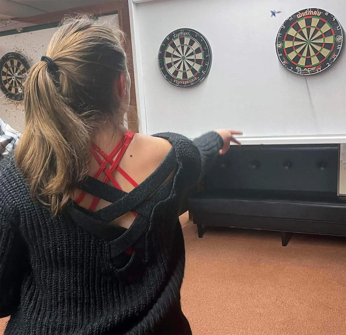 Thursday night at the Legion Hall is Dart Night. More than a dozen people gathered in the basement for target practice on March 2.