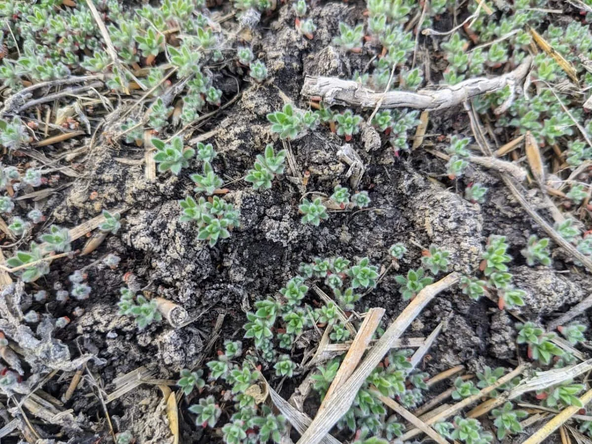 Kochia that survived pre-seed burnoff needs to be taken out before it drops seed later in the season. The big weeds can produce at least 15,000 seeds per plant…