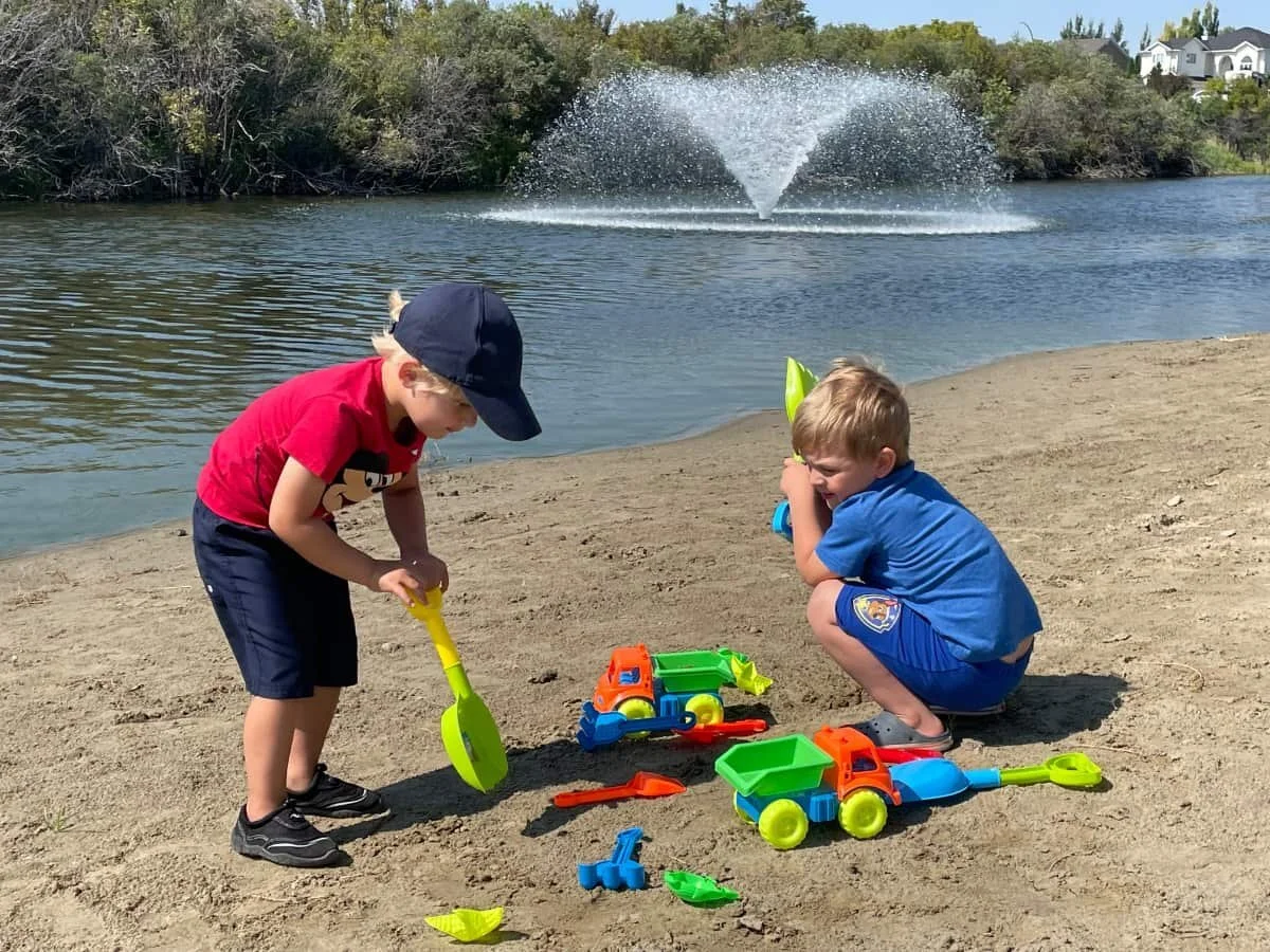 Work crews were not the only ones who were at work at the Kindersley beach and recreational area this week. These two young friends brought their own tools…