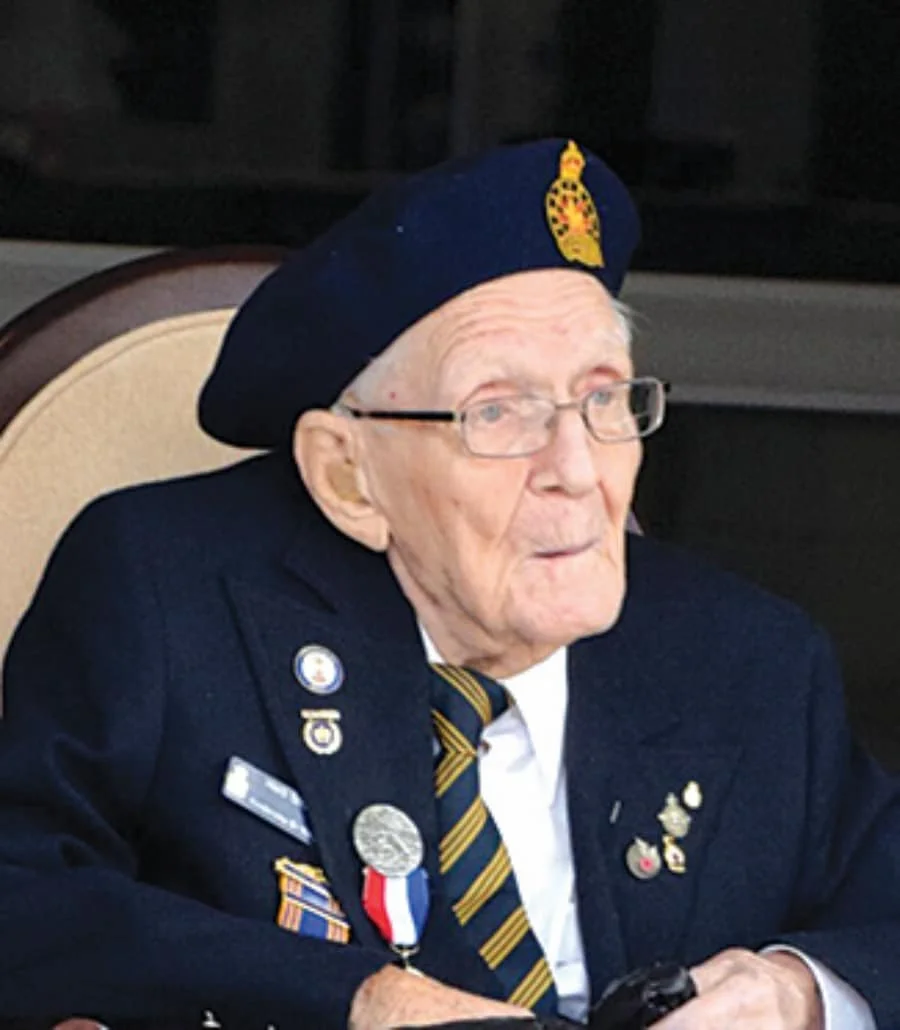 Herb returned to England in 1998 with his son, Roger, to visit his old haunts and take in an air show where restored WWII aircraft were flown. He was honoured to celebrate the 70th Anniversary of D Day in Normandy, France in 2014, accompanied by two grandsons, son and daughter-in-law. He was subsequently awarded the Legion D’Honneur by the French government which conferred a Knighthood upon him. He was very proud to be addressed as ‘Sir Herb’!