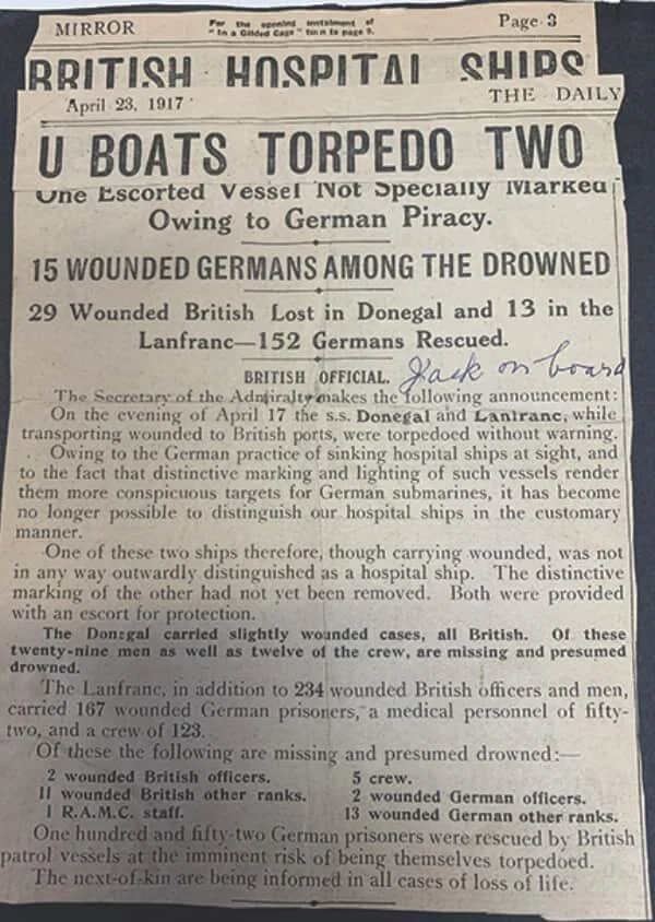He was on the ship which torpedoed in the English Channel.
